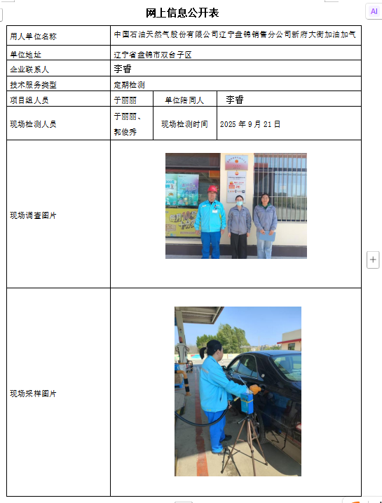 中国石油天然气股份有限公司辽宁盘锦销售分公司新府大街加油加气站