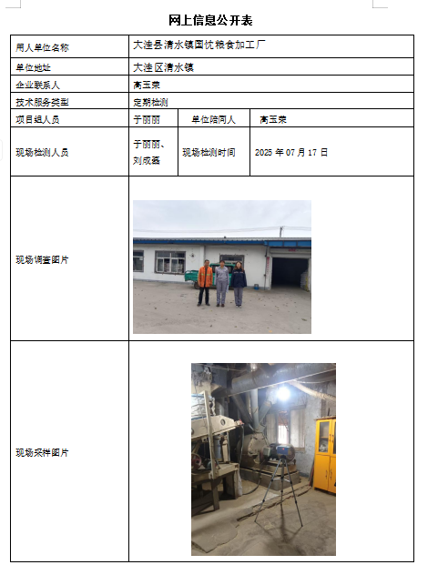 大洼县清水镇国忱粮食加工厂 职业病危害因素定期检测报告