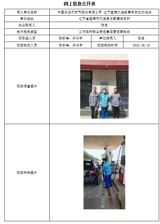 盘锦辽河泰成建设实业有限公司 2025年度职业病危害现状评价报告