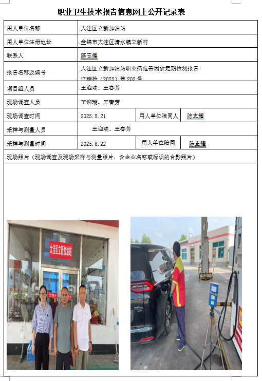 盘锦辽河泰成建设实业有限公司 2025年度职业病危害现状评价报告