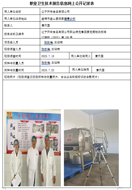 辽宁开味食品有限公司职业病危害因素定期检测报告