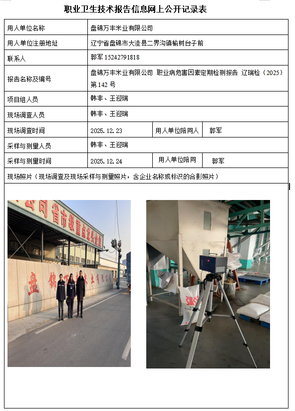 盘锦辽河泰成建设实业有限公司 2025年度职业病危害现状评价报告