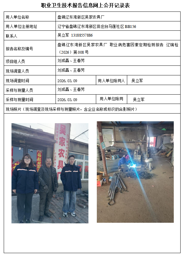 盘锦辽河泰成建设实业有限公司 2025年度职业病危害现状评价报告