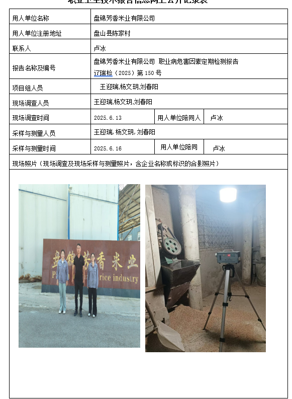 盘锦辽河泰成建设实业有限公司 2025年度职业病危害现状评价报告