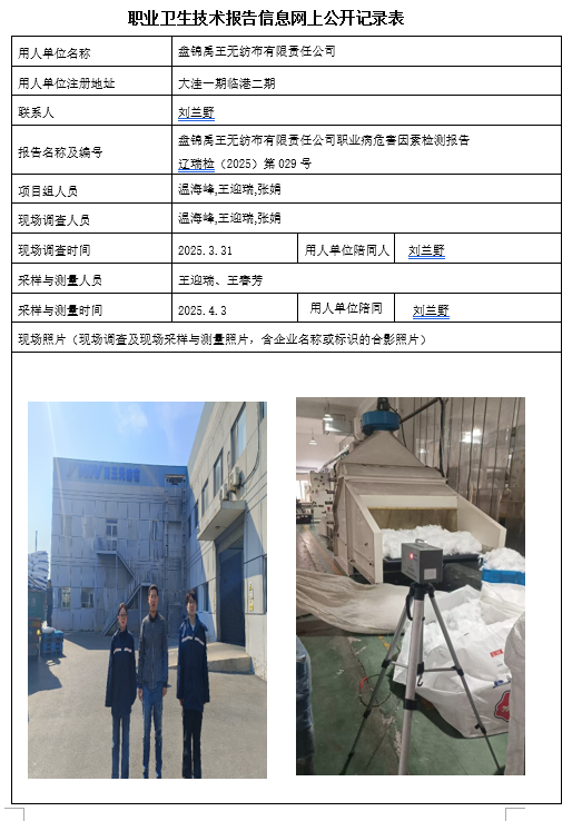 盘锦辽河泰成建设实业有限公司 2025年度职业病危害现状评价报告