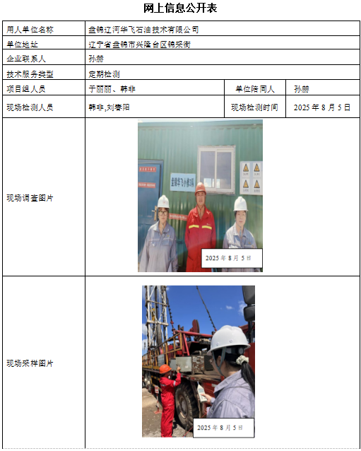盘锦辽河泰成建设实业有限公司 2025年度职业病危害现状评价报告