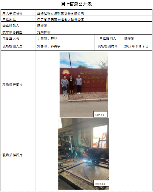 盘锦中瑞机械制造有限公司 2025年度职业病危害现状评价报告