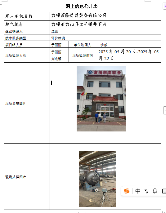 盘锦富隆防腐装备有限公司职业病危害现状评价报告