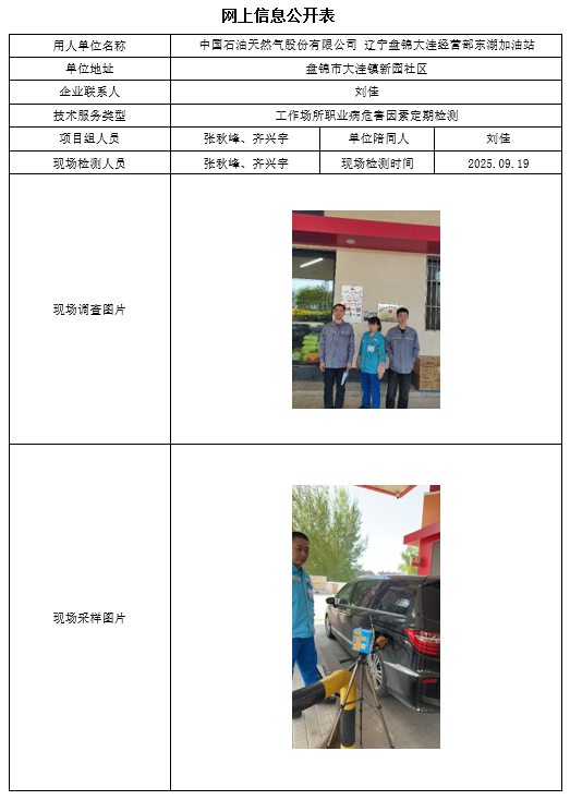 盘锦辽河泰成建设实业有限公司 2025年度职业病危害现状评价报告