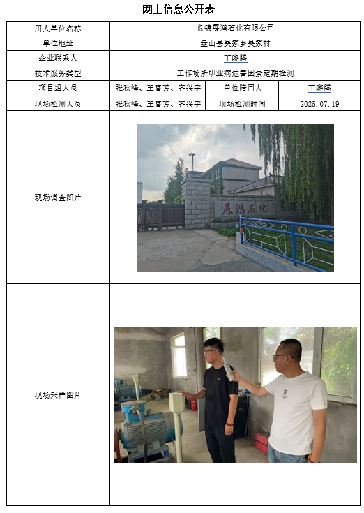 盘锦辽河泰成建设实业有限公司 2025年度职业病危害现状评价报告