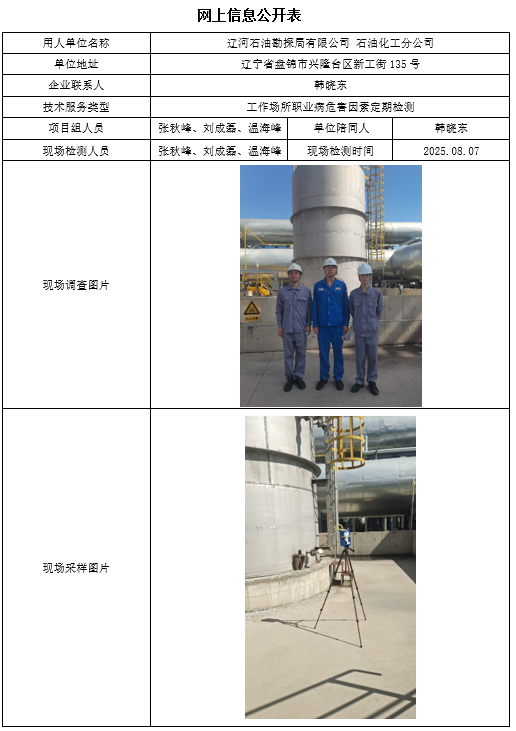 盘锦辽河泰成建设实业有限公司 2025年度职业病危害现状评价报告