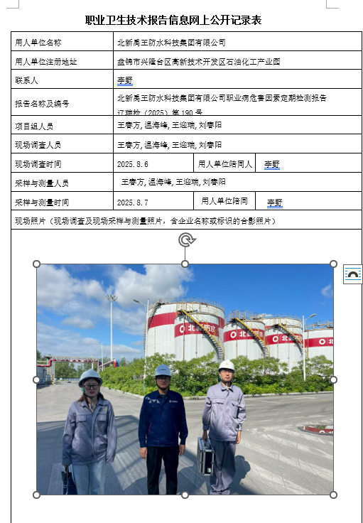 盘锦辽河泰成建设实业有限公司 2025年度职业病危害现状评价报告