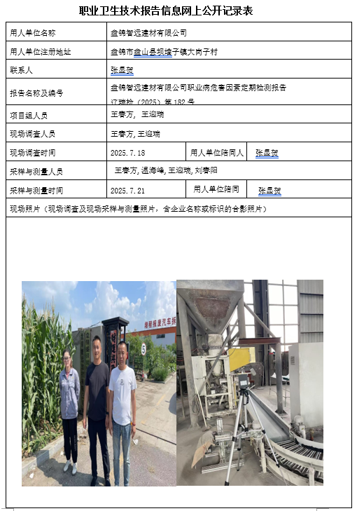 盘锦智远建材有限公司职业病危害因素定期检测报告