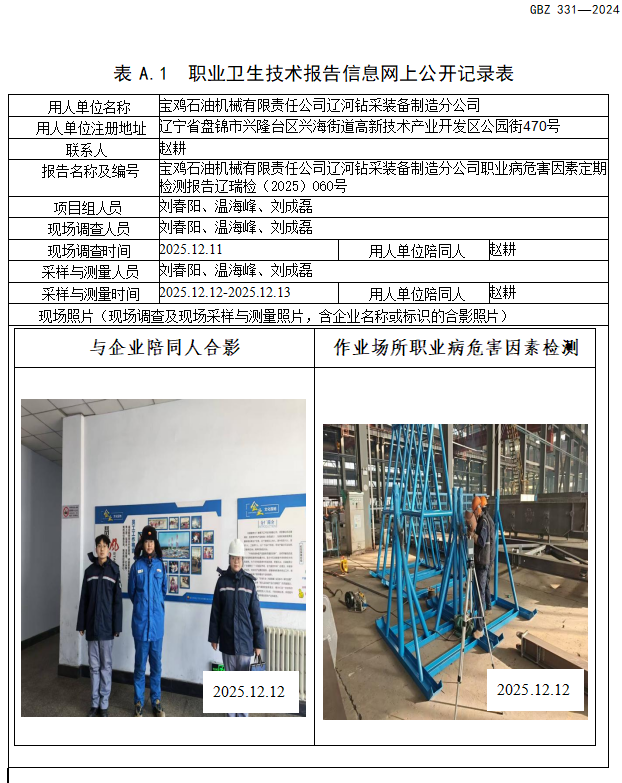 盘锦中瑞机械制造有限公司 2025年度职业病危害现状评价报告