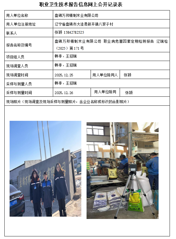 盘锦辽河泰成建设实业有限公司 2025年度职业病危害现状评价报告