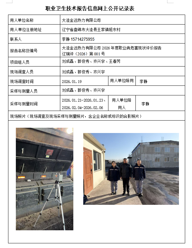 盘锦辽河泰成建设实业有限公司 2025年度职业病危害现状评价报告