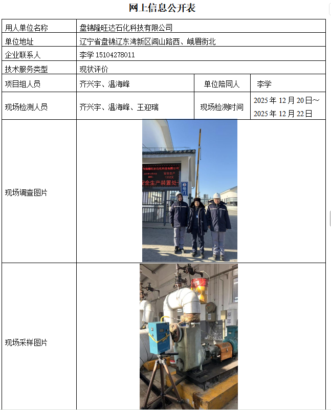 盘锦辽河泰成建设实业有限公司 2025年度职业病危害现状评价报告