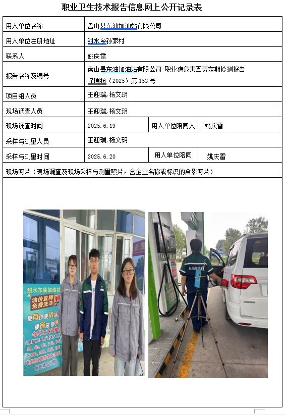 盘锦辽河泰成建设实业有限公司 2025年度职业病危害现状评价报告