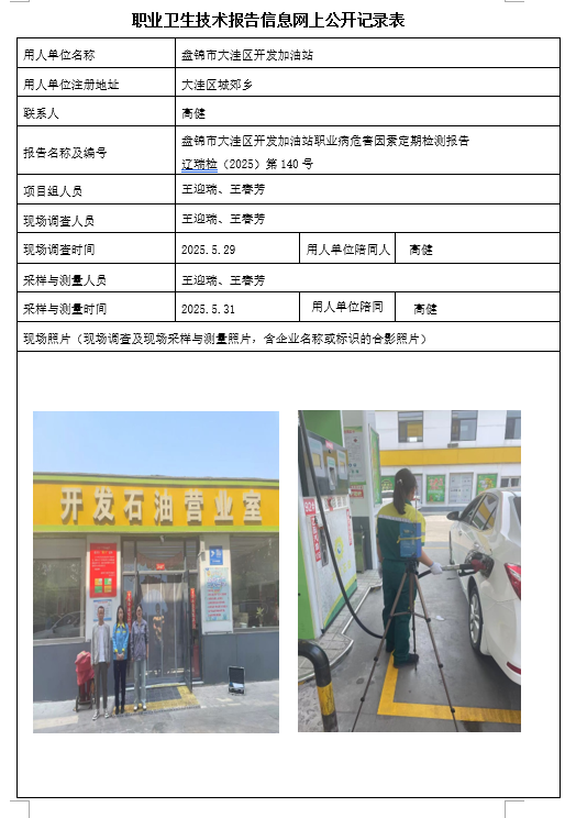 盘锦辽河泰成建设实业有限公司 2025年度职业病危害现状评价报告