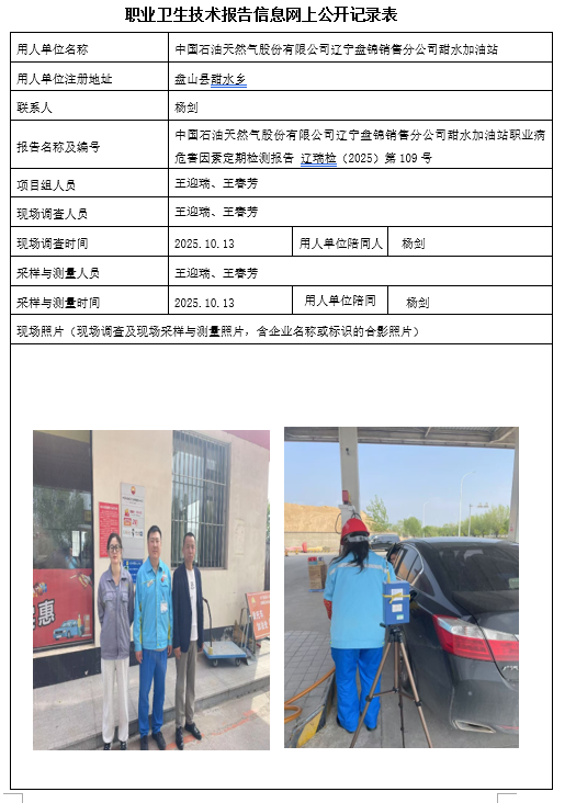 盘锦辽河泰成建设实业有限公司 2025年度职业病危害现状评价报告