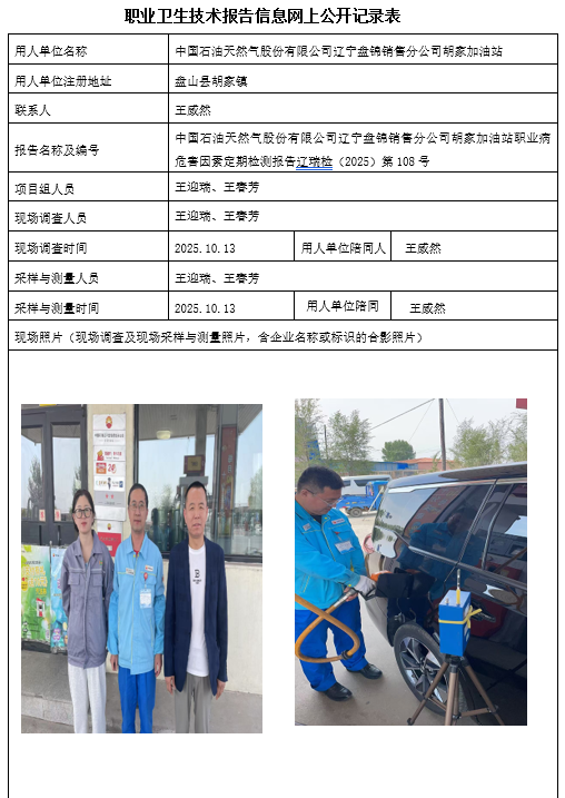 盘锦辽河泰成建设实业有限公司 2025年度职业病危害现状评价报告