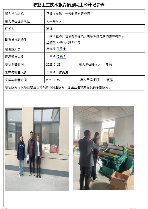盘锦辽河泰成建设实业有限公司 2025年度职业病危害现状评价报告