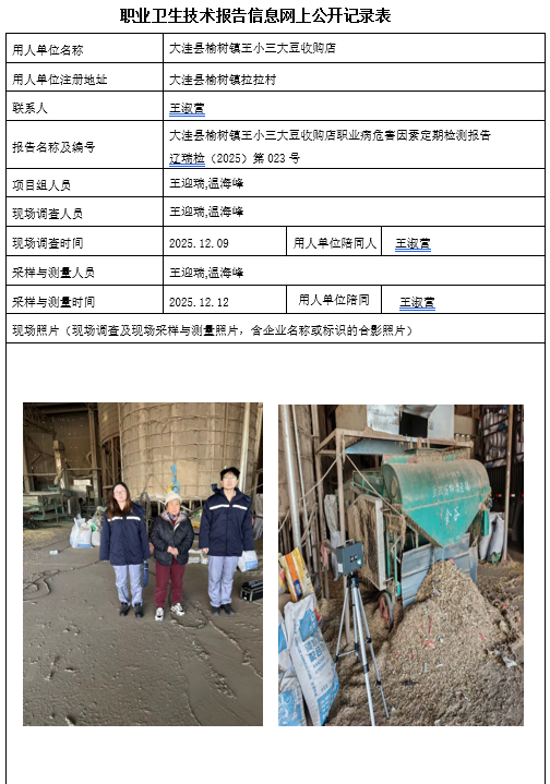 盘锦辽河泰成建设实业有限公司 2025年度职业病危害现状评价报告