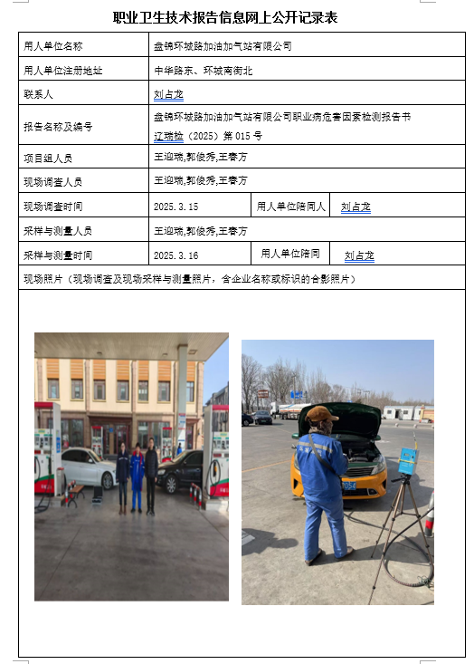 盘锦辽河泰成建设实业有限公司 2025年度职业病危害现状评价报告
